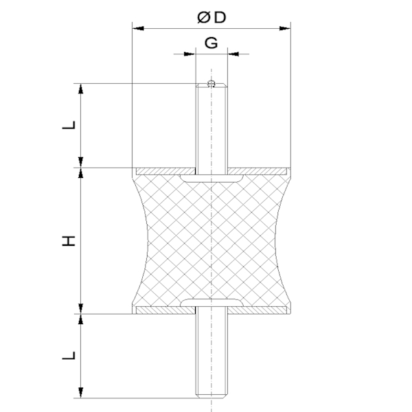 Gummi-Metall-Taillienpuffer Ø=60mm Höhe=420mm CR60°Shore mit Bds. AG. M12x28mm