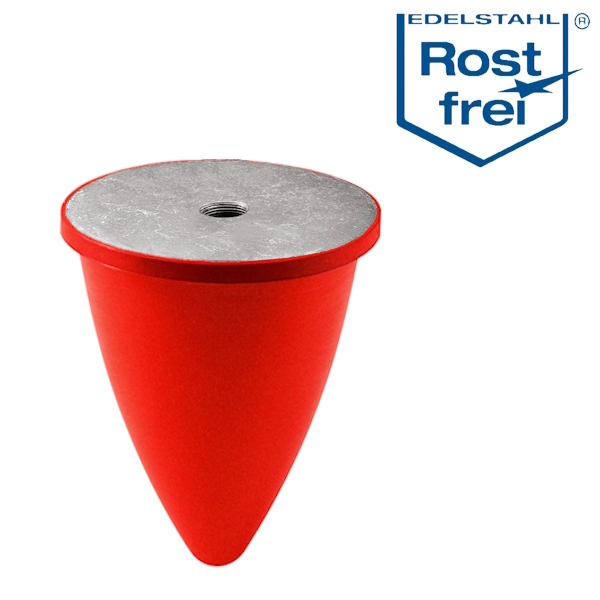 Silikon-Edelstahl-Puffer Ø=50mm Höhe=45mm VMQ60°Shore mit Eins. AG. M10x28/Eins.IG M10x10 tief
