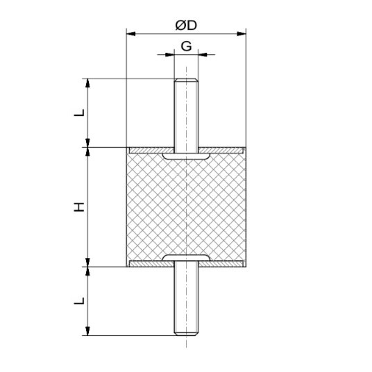 Gummi-Metall-Puffer Ø=40mm Höhe=30mm NR55°Shore mit Eins. AG. M8x15 / Eins. AG. M8x23