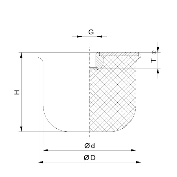 Gummi-Metall-Anschlagpuffer Typ ANC Ø 125mm Höhe=90mm NR, ca. 55° Shore, mit Eins. IG. M16x16
