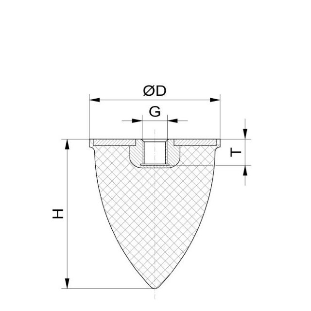Gummi-Metall-Parabelfeder Ø=35mm Höhe=40mm NR55°Shore mit IG.M8x8 tief