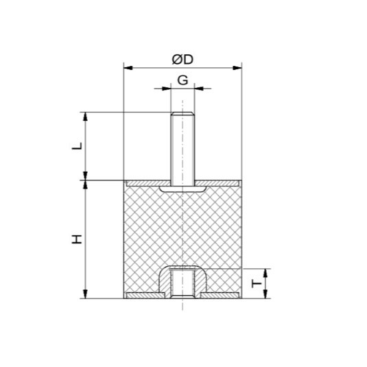 Gummipuffer dieser Konstruktion sind auch in anderer Varianten erhältlich, z.B. mit abweichenden Gummisorten, Härten oder Metall.